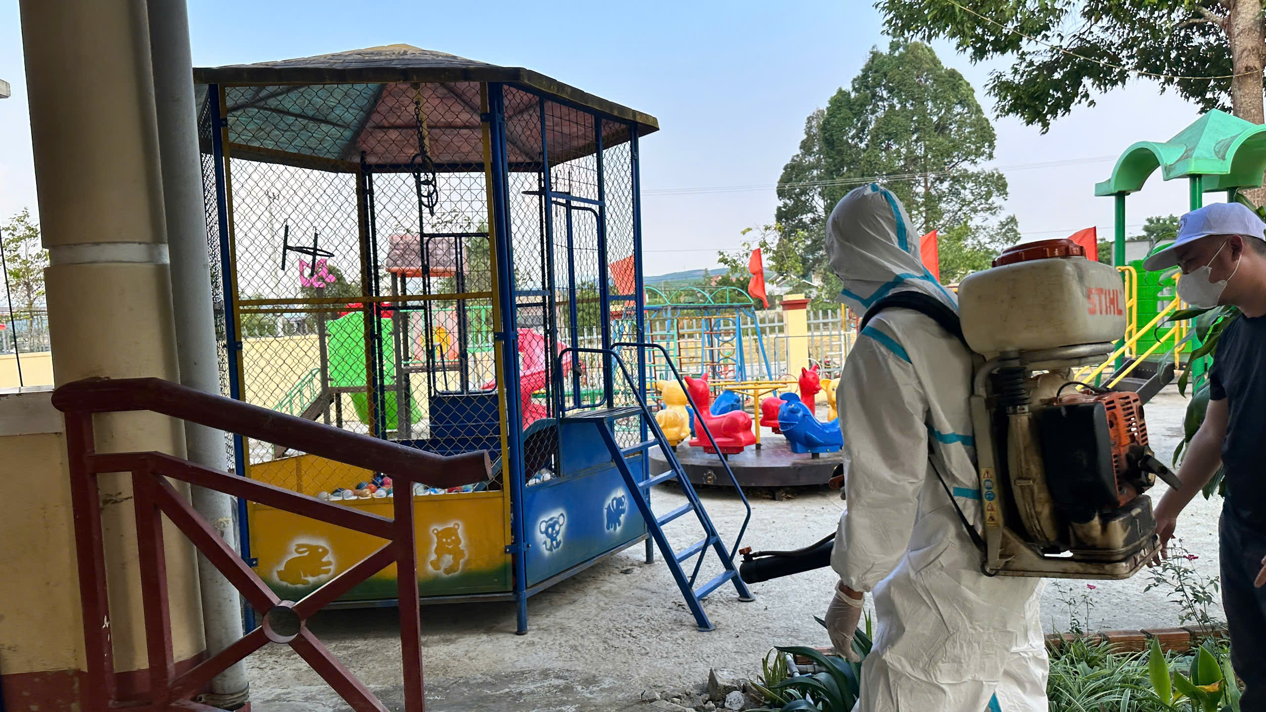 TRẠM Y TẾ XÃ CƯ M’TA TỔ CHỨC PHUN KHỬ KHUẨN PHÒNG, CHỐNG BỆNH TAY CHÂN MIỆNG TẠI TRƯỜNG MẪU GIÁO HOA SEN